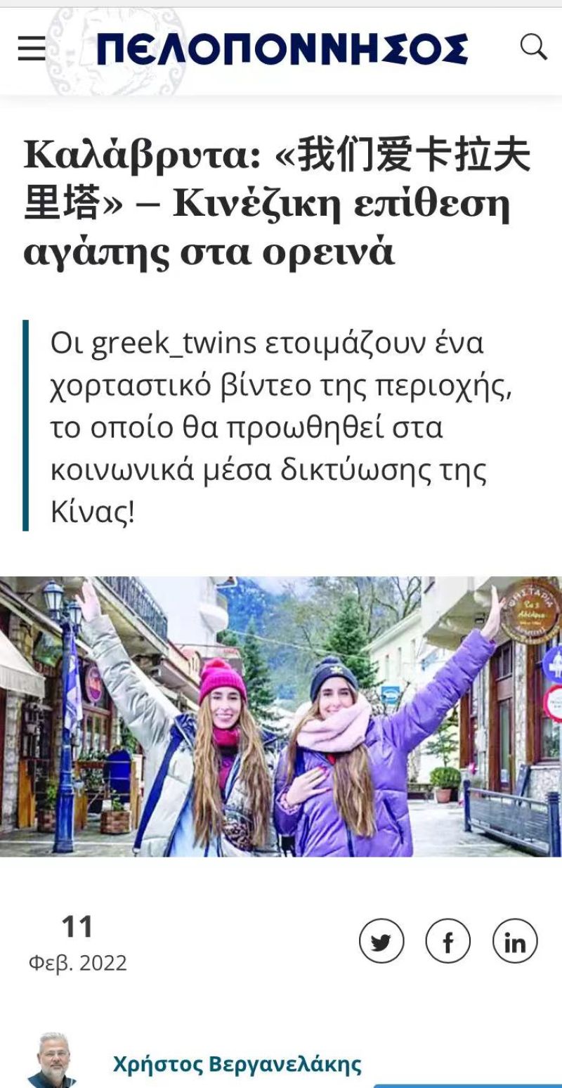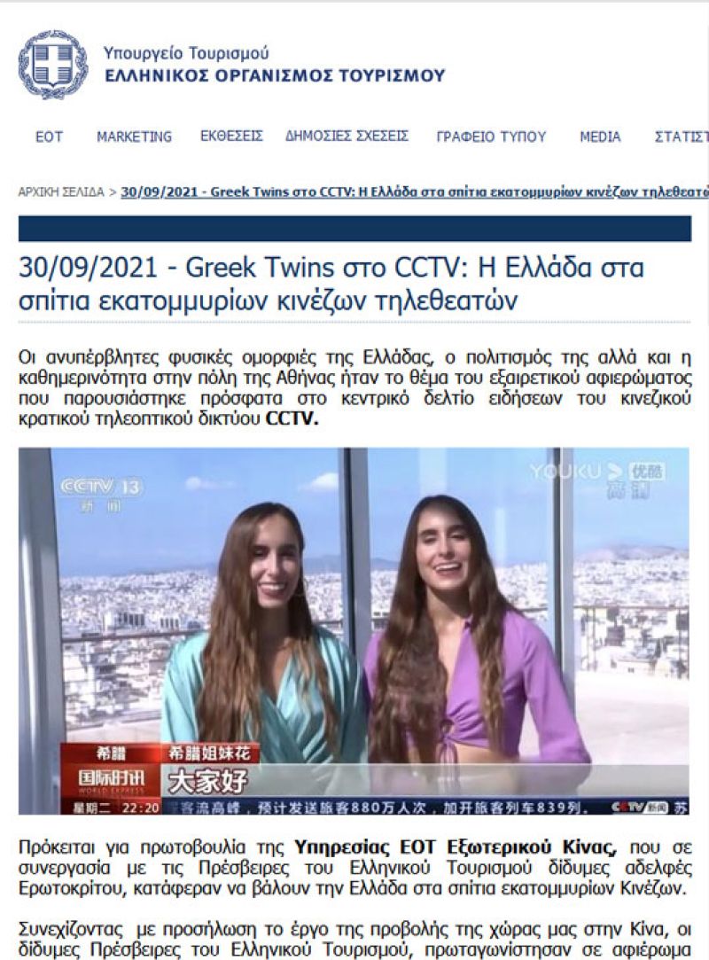 Greek twins appointed "Ambassadors of Greek Tourism in China"
