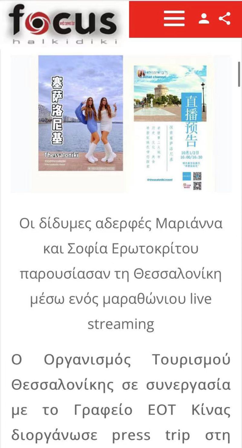 Through our social media activities and the recognition we have in China, Greek TV presenters named us as the Greek Amabassdors of Tourism and Culture in China