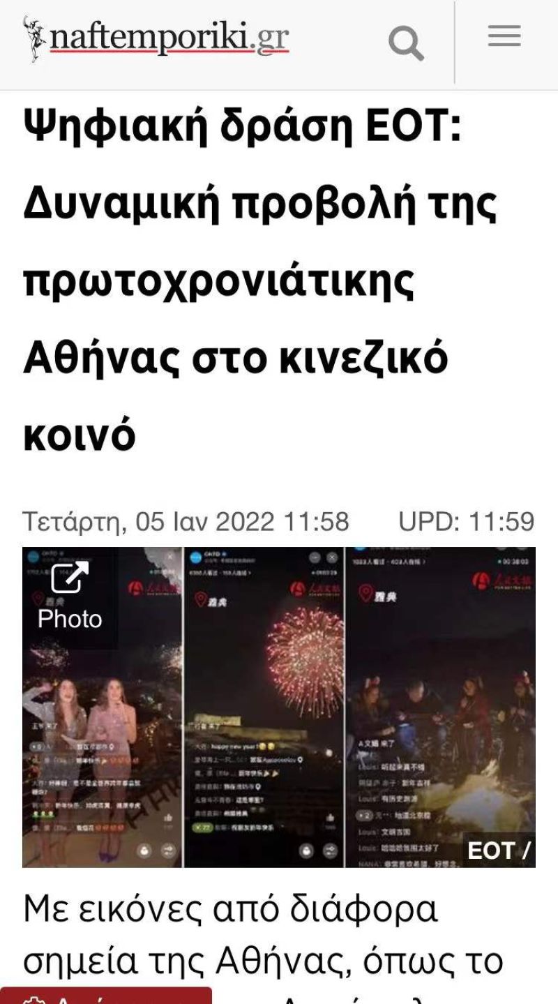 Initially, we begun by uploading videos, along with live streaming from Greece in Mandarin, focusing on popular tourist spots, the traditional food we sampled, and the experiences we had. To our surprise, we started receiving hundreds of positive comments and requests online, especially from young people in China and so we decided to do more videos to promote our country. Following regular live streaming from Greece and China in the popular Netease.com platform, we never envisioned that in such a short time we would secure a warm and friendly audience that was eagerly anticipating to see our videos and live streamings and get to know everyday Greek life from the local point of view. Videos such as making a Greek coffee or preparing Greek pies in a Monastiraki bakery became very popular. Additionally, we were surprised to see the reception of a live streaming we did concerning the way local Chinese school students spent Chinese New Year in Athens, which reached 1.2 million viewers. Our videos on popular Greek islands such as Santorini, Paros, Naxos, Mykonos, Hydra, have also been viewed by hundreds of thousands of fans and continue to be popular and go viral on various social media and other platforms.