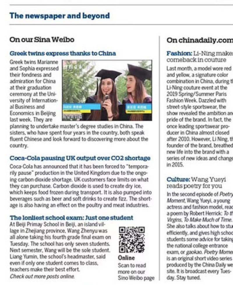 Through our social media activities and the recognition we have in China, Greek TV presenters named us as the Greek Amabassdors of Tourism and Culture in China